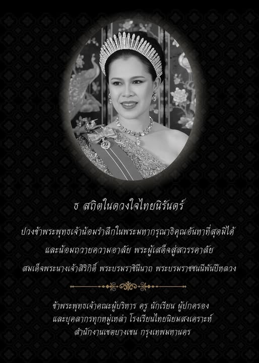 ปวงข้าพระพุทธเจ้าน้อมรำลึกในพระมหากรุณาธิคุณอันหาที่สุดมิได้  และน้อมถวายความอาลัย ส่งเสด็จสู่สวรรคาลัย  สมเด็จพระนางเจ้าสิริกิติ์ พระบรมราชินีนาถ พระบรมราชชนนีพันปีหลวง